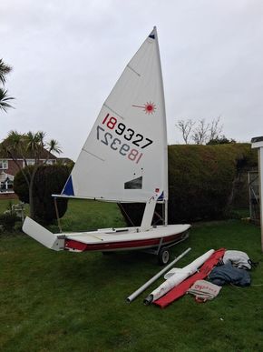 Laser 1 XD with a full sail and mast radial sail and mast 2 covers gunnel hung launching trolley long sail bags for both sails in great condition